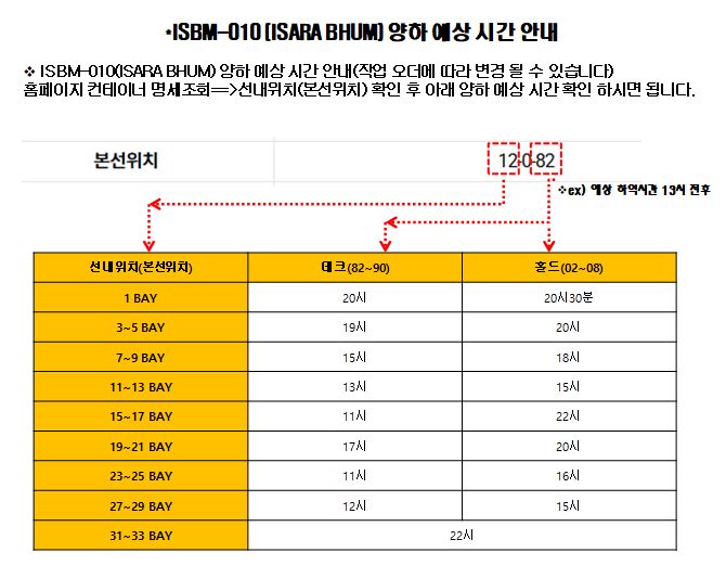 제목 [공지] ISBM-010(ISARA BHUM) 양하 예상 시간안내